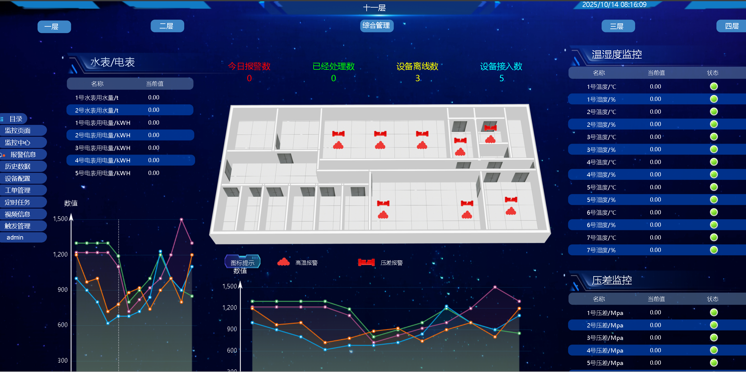 檔案庫房環境監測監控系統設計體現高度集成化、自動化、人性化特點,一套軟件實現全部智能化管理控制