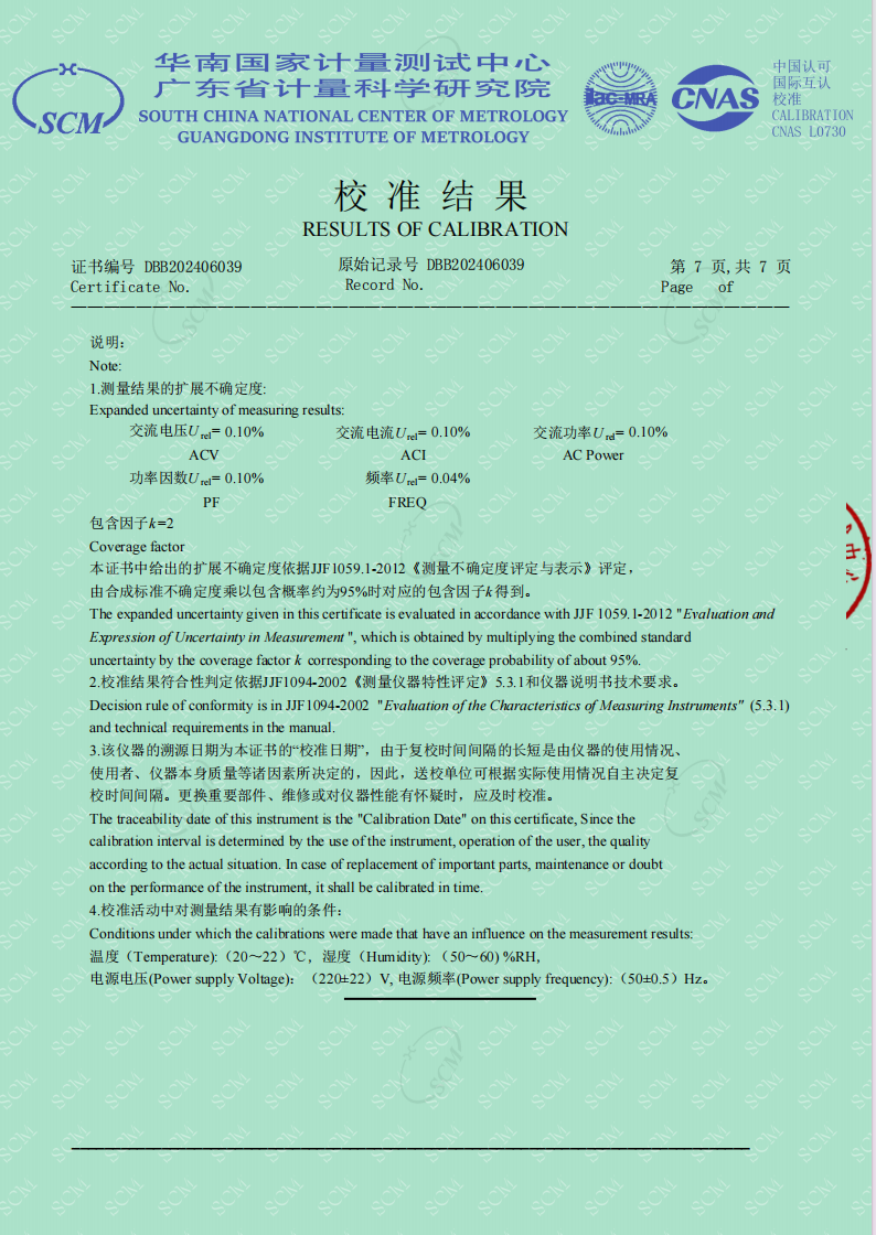 多功能電量儀檢測報告