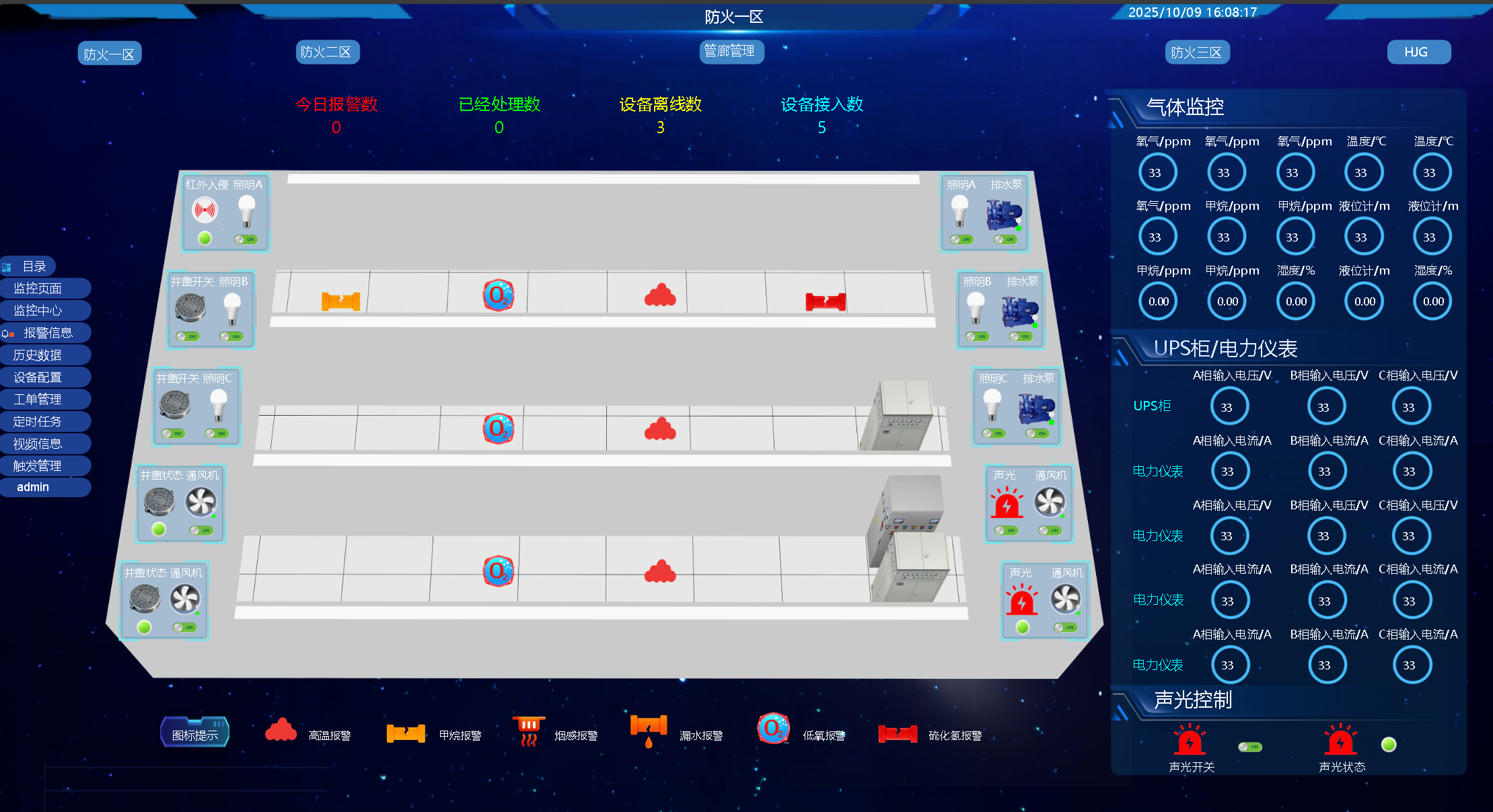 通過管廊三維模型或平面圖,動態展示所有防火分區、艙室的實時環境參數與設備狀態。監控中心大屏一目了然,提升態勢感知能力。