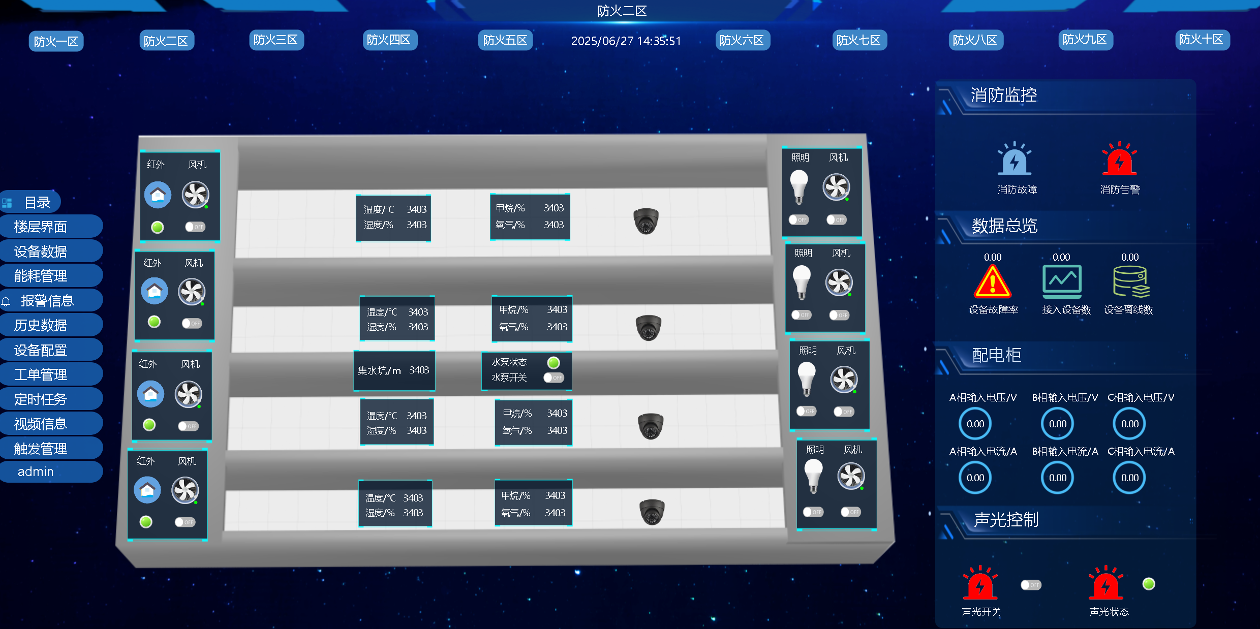 信息匯聚柜與監(jiān)控分區(qū)ACU柜組成監(jiān)控子干環(huán)網(wǎng)和視頻子干環(huán)網(wǎng)控制中心監(jiān)控計算機(jī)顯示器上能生動形象地反映出綜合管廊建筑模擬圖、管廊內(nèi)各設(shè)備的狀態(tài)、儀表檢測數(shù)據(jù)和動力配電的實時數(shù)據(jù)并報警。監(jiān)控計算機(jī)同時還向現(xiàn)場ACU發(fā)出控制命令、啟?,F(xiàn)場附屬設(shè)備。附屬設(shè)備監(jiān)控系統(tǒng)通過以太網(wǎng)交換機(jī)與火災(zāi)報警系統(tǒng)聯(lián)網(wǎng)。